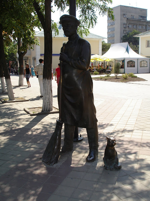 Вылитый из бронзы усатый дворник высотой в человеческий рост появился в сквере по улице 50-летия Белгородской области, возле Центрального рынка в 2006 году. Скульптор – уже знакомый Тарас Костенко. Учитывая, что в Белгороде ни одна скульптура не появляется просто так, стоит найти объяснение и этому персонажу. Из уст заместителя начальника городского управления культуры Елены Кудиновой оно прозвучало примерно так: «Белгород неоднократно отмечался правительством РФ как один из самых благоустроенных, зеленых городов России и, безусловно, немалая заслуга в этом тружеников метлы и лопаты». Зрителям представлен стоящий под фонарем спокойный, «явно непьющий», как высказался один из прохожих, мужчина средних лет. В руках у него метла, а рядом сидит кошка. 175-килограммовая бронзовая скульптура была изготовлена за три месяца, отлита в Киеве. Белгородский дворник – второй в России памятник представителям этой профессии. Его старший брат был установлен во Владимире.